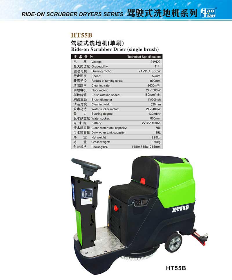 HT55B 駕駛式洗地機(jī)(單刷) 主頁>>洗地機(jī)>HT55B 駕駛式洗地機(jī)(單刷)>